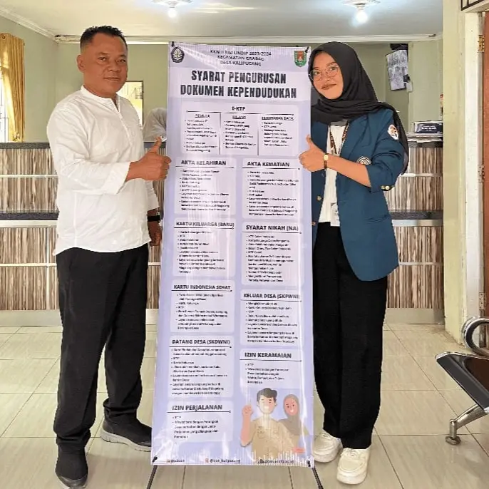 Sragen (29/07/2024) – Pada 29 Juli 2024, Mahasiswa KKN Tim II Universitas Diponegoro 2023/2024 telah berhasil menyelesaikan pembuatan canva site yang berisi layanan berkas pembuatan dokumen kependudukan dengan tujuan memudahkan akses persyaratan berkas dalam pembuatan dokumen kependudukan bagi masyarakat Desa Kacangan. Kegiatan ini merupakan inisiatif Heni Widyasari, Mahasiswa KKN dari program studi Administrasi Publik, Fakultas Ilmu Sosial […]