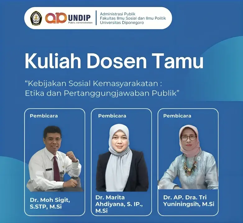 This guest lecture is part of the Department of Public Administration at FISIP UNDIP’s efforts to enrich the education and expertise of students, ensuring they are well-prepared to excel in the field of public administration.