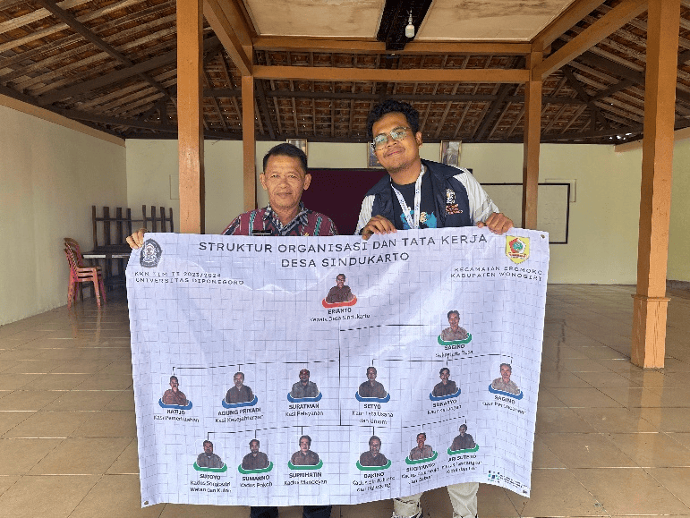 Wonogiri (1/8/2024). The village is the smallest unit of government that plays an essential role in national development. In an effort to create a more advanced village, the Community Service Program (KKN) Team II of Diponegoro University (Undip) 2024 in Sindukarto Village, Eromoko Subdistrict, Wonogiri Regency, led by Muhammad Shabhi Octaviandy, also known as Shabhi, from the Public Administration Study Program, Faculty of Social and Political Sciences, identified several issues in the village government. As a solution, Shabhi proposed a restructuring plan aimed at improving efficiency and accountability.