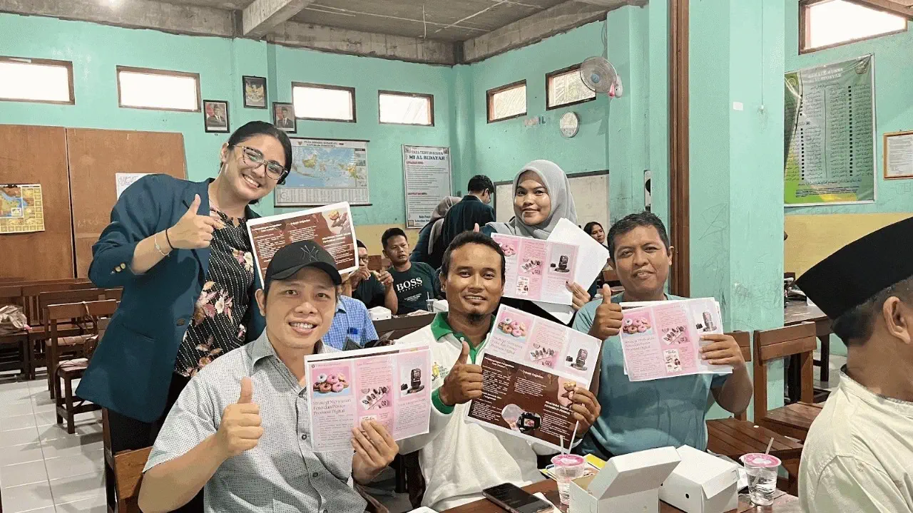Di sela-sela waktu tersebut, mahasiswa membagikan berbagai macam leaflet dan booklet yang telah dipersiapkannya untuk para hadirin. Mahasiswa memanfaatkan waktu ini untuk memberi edukasi singkat mengenai leaflet dan booklet tersebut yang menawarkan berbagai materi yang bisa membantu pelaku UMKM dalam meningkatkan bisnisnya.