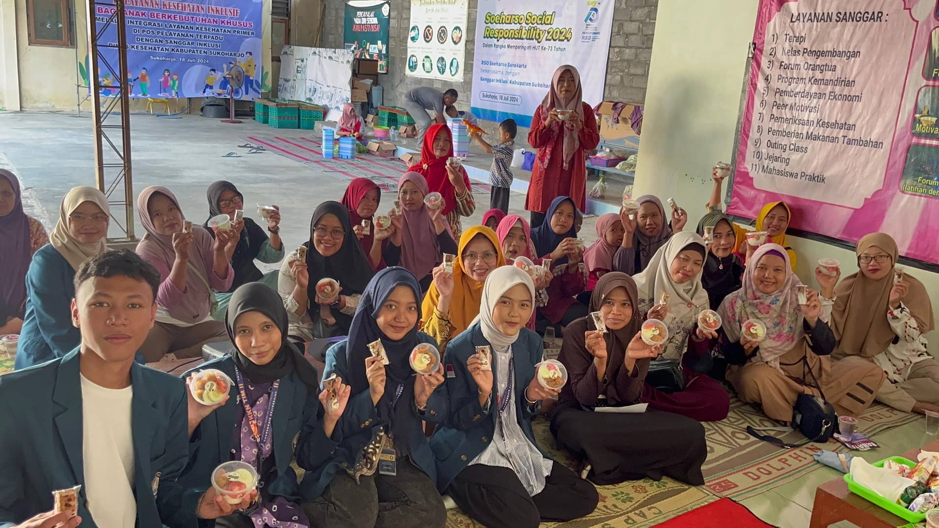 Program kerja penanganan stunting oleh KKN Tim II Desa Nguter dilaksanakan pada Rabu, 24 Juli 2024, bertempat di Sanggar Inklusi “Tunas Bangsa” Desa Nguter, dengan melibatkan Prodi Akuakultur (FPIK) sebagai demonstrator pembuatan nugget ikan yang terbuat dari campuran ikan lele dan ikan nila yang tinggi protein hewani, omega-3, dan vitamin D; Prodi Teknologi Rekayasa Kimia Industri (SV) sebagai demonstrator pembuatan snack bar berbahan dasar tepung beras merah dan bubuk jahe yang kaya akan serat dan protein nabati; dan Prodi Administrasi Publik (FISIP) sebagai pemateri mengenai penyebab, dampak, bahaya, dan penanganan stunting. Rangkaian acara dimulai dengan sosialisasi mengenai penyebab, dampak, bahaya, dan penanganan stunting. Terakhir ditutup dengan pembagian sampel nugget ikan dan snack bar kepada peserta, yaitu ibu dan anak posyandu sanggar inklusi.