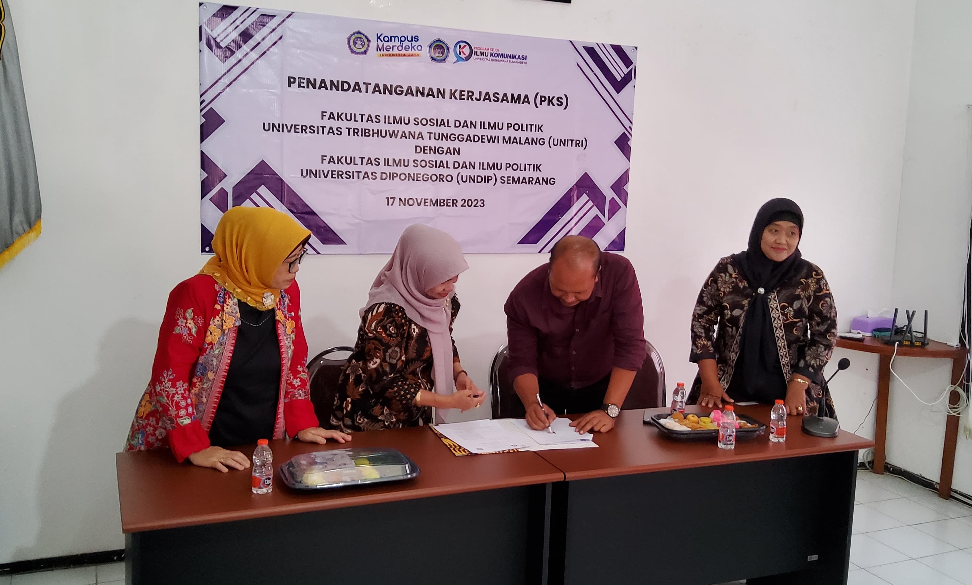 Pada tanggal 17 November 2023 telah ditandatangani Perjanjian Kerja Sama antara FISIP Universitas Diponegoro dengan FISIP UNITRI dalam Tri Dharma Perguruan Tinggi.Rombongan tim FISIP UNDIP terdiri dari Ketua Departemen Administrasi Publik Dr. AP. Dra. Tri Yuniningsih, MSI, Kaprodi S1 Dra. Maesaroh, MSi dan Sekprodi S1 Amny Zarkasi, S.Sos, MSi. Sementara dari Universitas Islam Malang dipimpin langsung oleh Dekan FISIP UNITRI Dr.  Agung Suprojo, S.Kom., M.AP