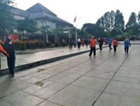 • Setiap Senin pagi mahasiswa magang mengikuti kegiatan apel bersama seluruh staf Disdukcapil dan di Hari Jumat, mengikuti jalan sehat dan senam pagi.