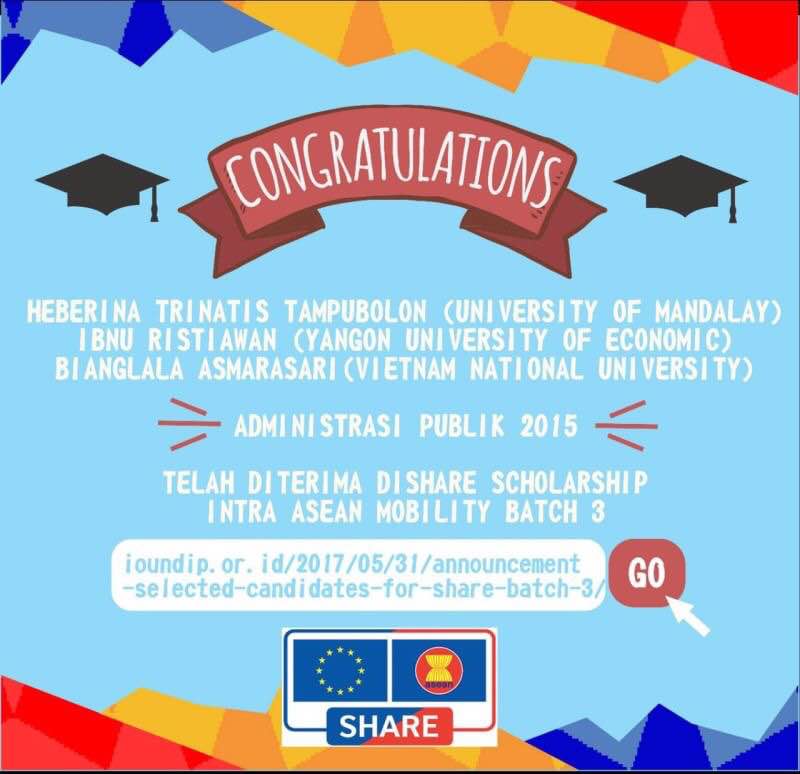 Kali ini beberapa teman-teman kita telah diterima di “Scholarship Intra Asean Mobility Batch 3”